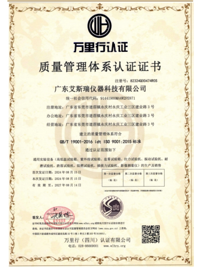 廣東艾斯瑞儀器科技有限公司 廣東艾斯瑞儀器科技有限公司在東莞道滘投產,廠房面積38000平方,是一家擁有著多年試驗機研發、設計、生產的廠家,經驗雄厚并與國內外知名企業合作,產品遠銷世界多個國家和地區。 產品符合標準:ISO、AATCC、ASTM、DIN、EN、GB、BS、JIS、ANSI、UL、TAPPI、IEC、VDE….均可用,產品廣泛適用于:科研單位、質檢機構、大專院校以及電子電器、涂料、箱包、膠粘、手機、紡織、玩具、橡膠、塑料、金屬、電線電纜、制鞋、皮革、包裝、建材、石化、航空…等產業,為材料開發、物性試驗、教學研究、品質管理、進料檢驗等必備。 艾斯瑞儀器將建立起遍布亞、美、歐三大洲的專業研發網絡,建立健全創新機制及知識產權管理平臺,為公司發展奠定基礎,從而成為國內企業中產品馳騁全球的先導者。 公司自成立以來堅決以品質為核心,精美外觀設計為中心,以及認真務實的工作精神,更好服務于廣大客戶并贏得良好的口碑。我們將一如既往,堅持以“誠信經營”為本,“品質至上”為主,服務至上為宗旨,用創新的思路和技術設計產品,保證優良的品質,品質管理、進料檢驗等必備。